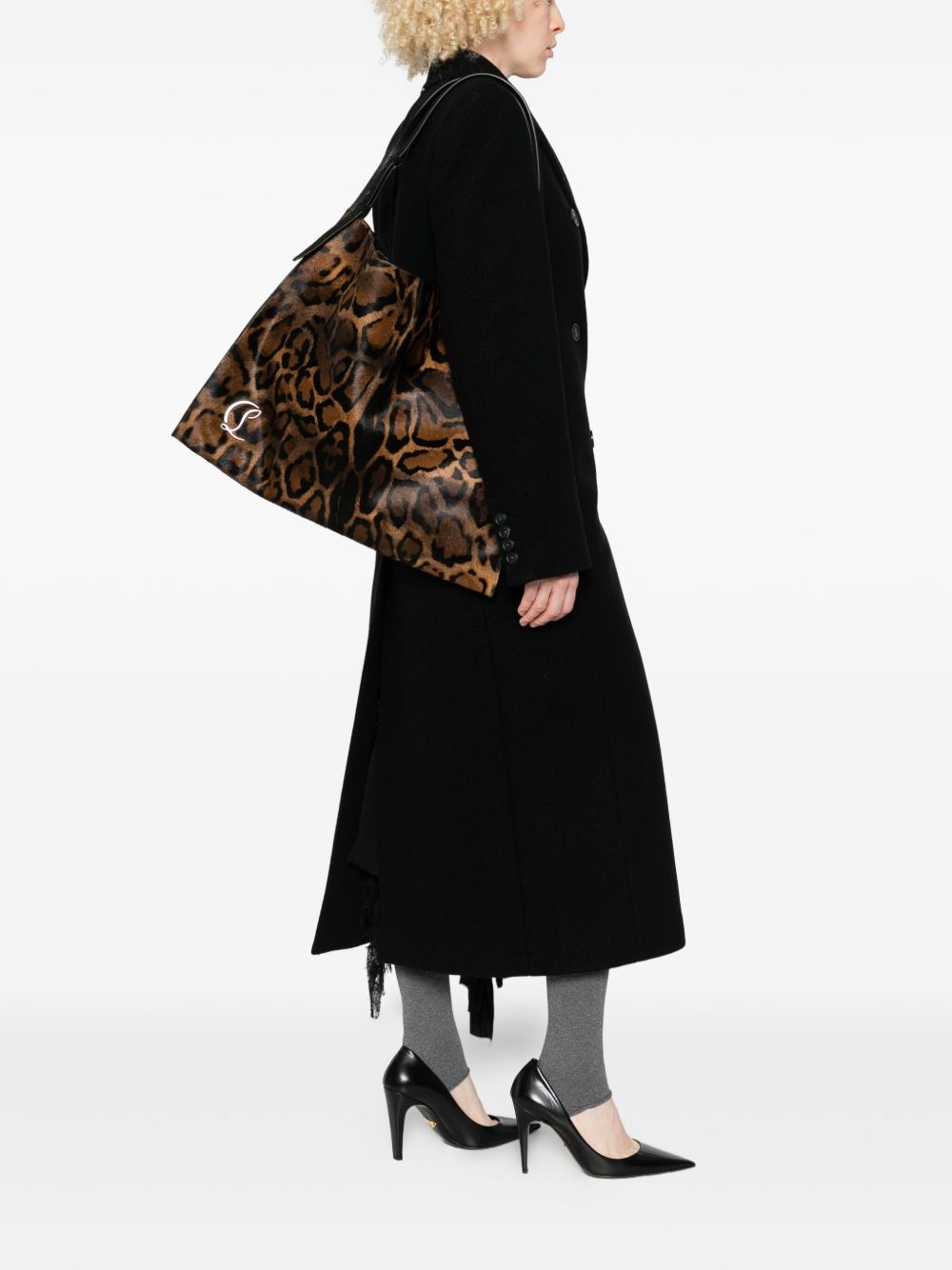 brown leopard print top handle buckle fastening metallic logo Baggy leather shoulder bag
