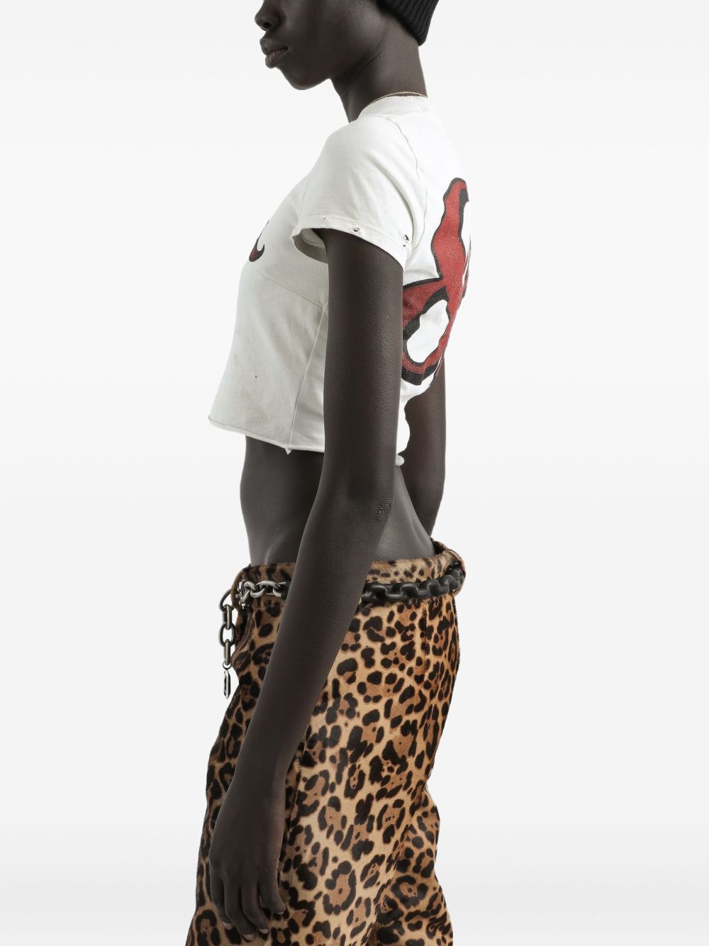 off-white doll print short sleeves cropped hem distressed edges round neck Printed cotton t-shirt