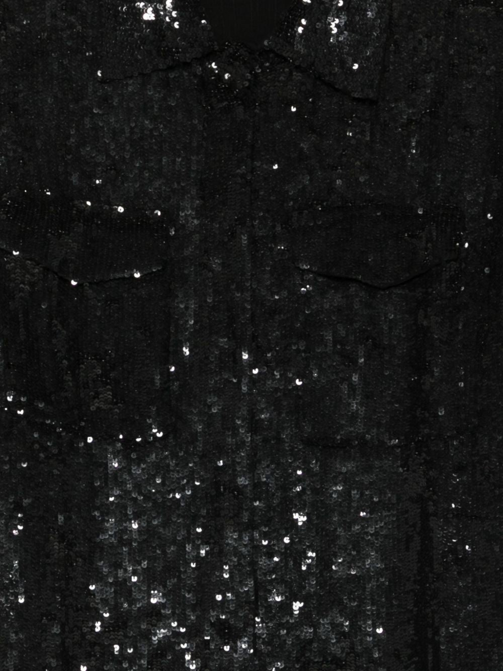 black sequinned long sleeves button fastening flap pockets Sequined shirt