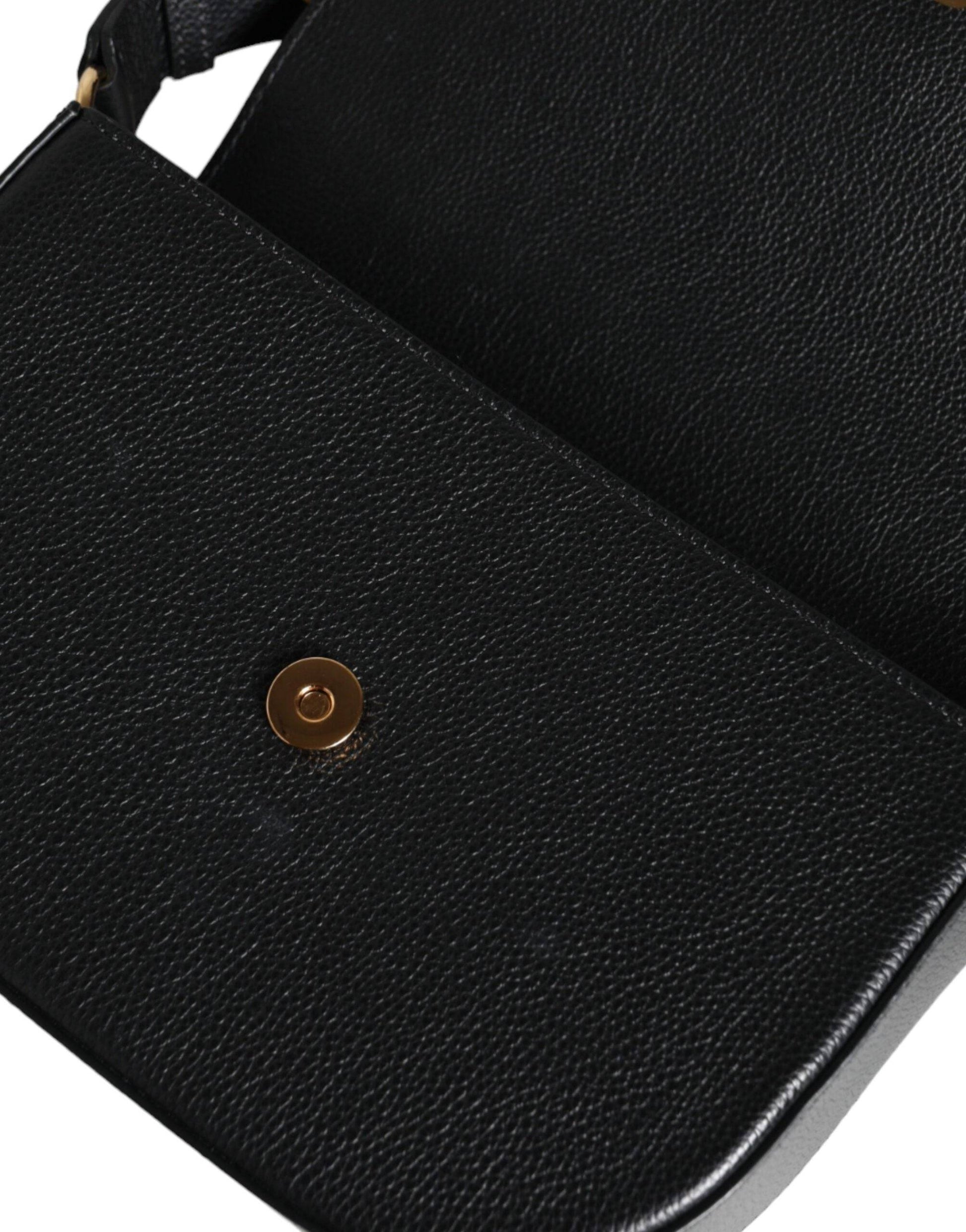 Versace Black Grainy Calf Leather Logo Crossbody Shoulder Bag