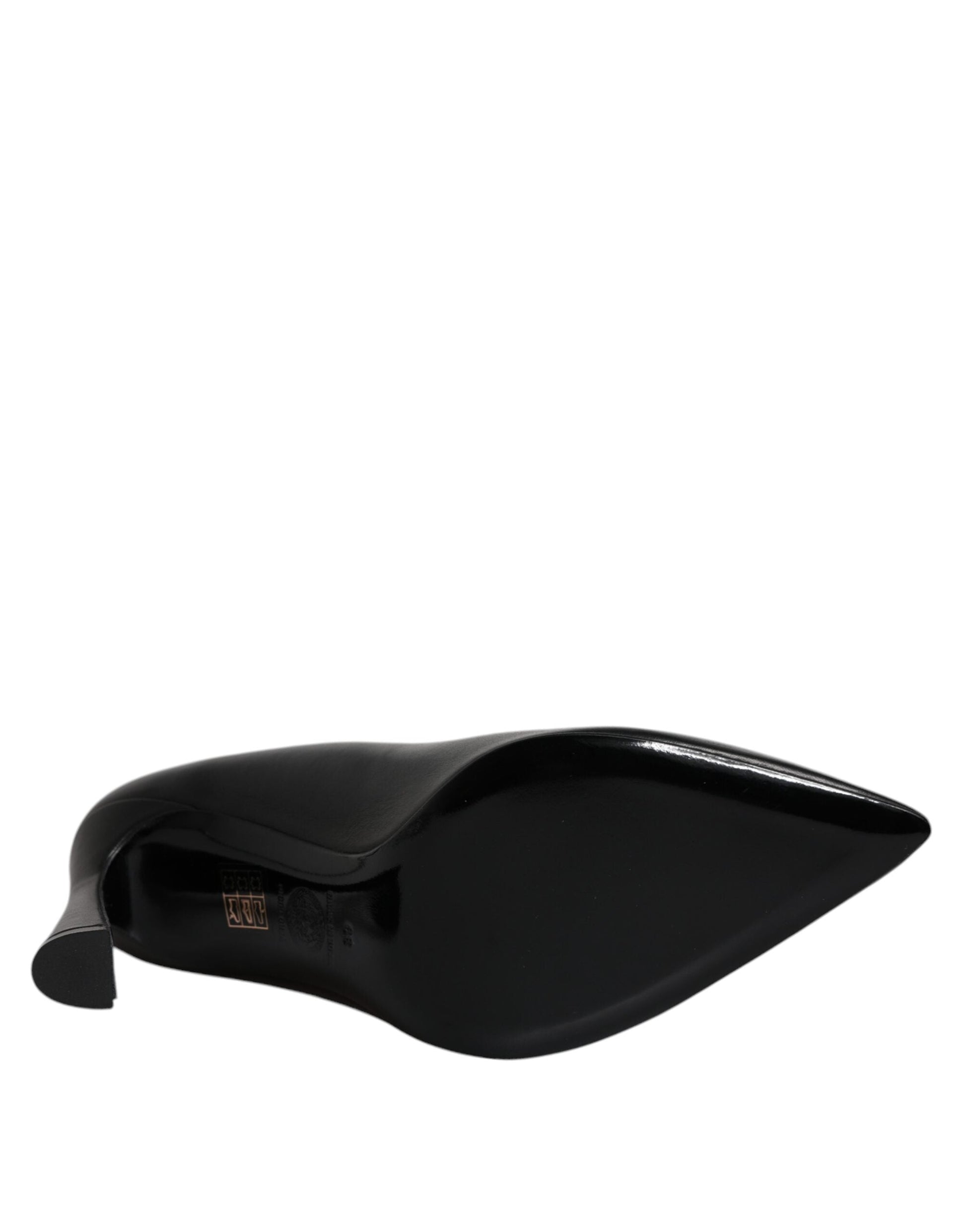 Versace Black Leather Logo Plaque High Heels Pumps Shoes